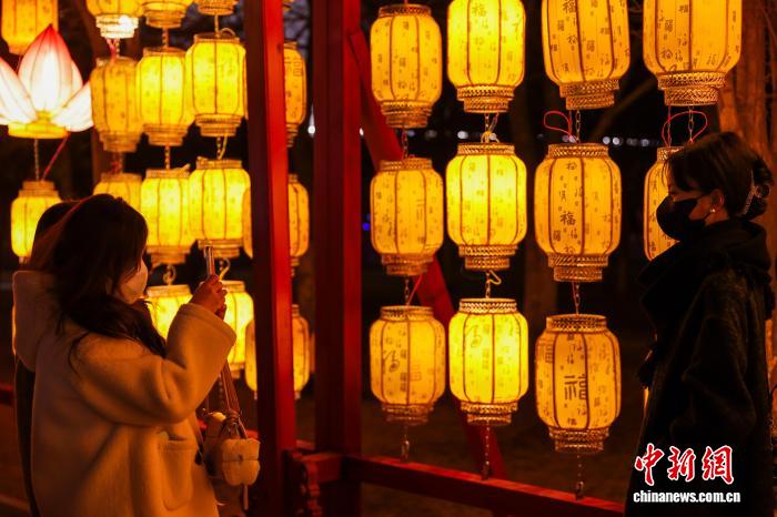 图为民众欣赏花灯。中新社记者 薛蒂 摄