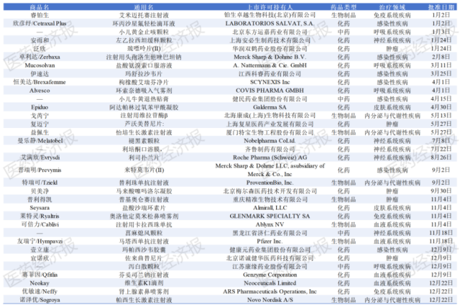 其中多个1类新药获批上市,实现了相关用药的从无到有,如北海康成研发的注射用维拉苷酶β、复星医药研发的芦沃美替尼片和精准生物研发的普基奥仑赛注射液等。