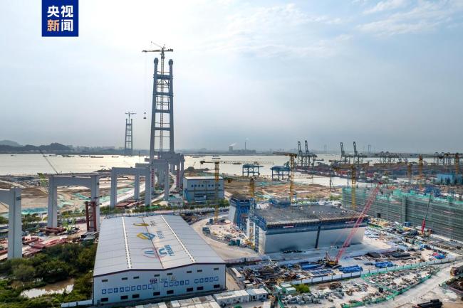 世界最高双层悬索桥主塔亮相珠江口 创五项世界第一