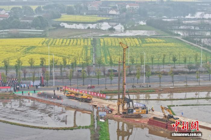 图为工人进行桩基钢筋笼吊装作业。中新社记者 杨华峰 摄