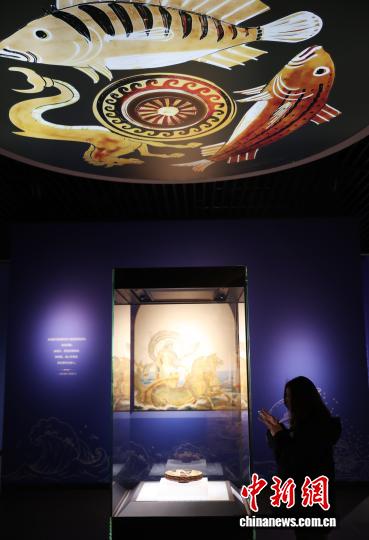 图为市民在博物馆内参观阿普利亚式红绘鱼盘。中新社记者 于晶 摄