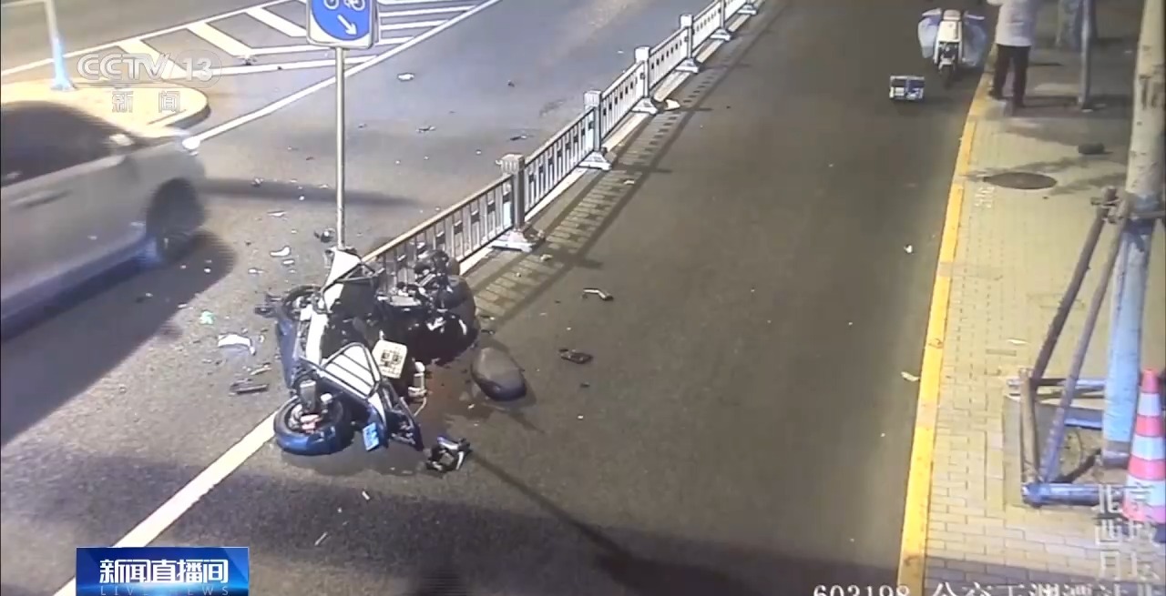 类似的事故还发生在海淀区三里河路,一名骑车人驾驶电动自行车,猛地撞到机动车道与非机动车道之间的隔离护栏上,由于车速较快,电动自行车损毁严重,大量车身碎片散落地面。但经急救人员检查,骑车人受伤轻微,正是因为其佩戴了安全头盔。