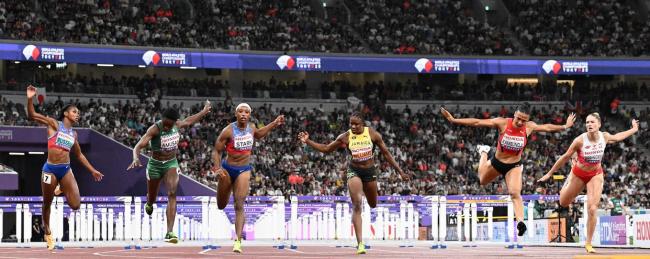 9月15日,2025年世界田径锦标赛女子100米栏决赛在日本东京举行。瑞士选手坎邦吉冲过终点,夺得冠军。赛后,她与亚军尼日利亚选手托比以及季军美国选手斯塔克一同庆祝胜利