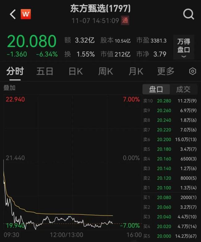11月7日,东方甄选股价低开并迅速下跌,截至发稿时跌幅超过6%,报价20.080港元。此前一天,俞敏洪在社交媒体上确认孙东旭已从东方甄选离职。俞敏洪表示,他和孙东旭是东方甄选的创始人。最近,孙东旭因个人原因提出不再继续工作