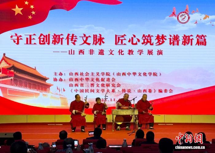 中新网太原11月13日电 (记者 杨杰英)12日,山西社会主义学院(山西中华文化学院)报告厅内,国家级非遗代表性项目传承人卢补良带来的晋北鼓吹《大得胜》,瞬间将观众带入古战场凯旋的欢庆场景。这是山西非遗守正创新研