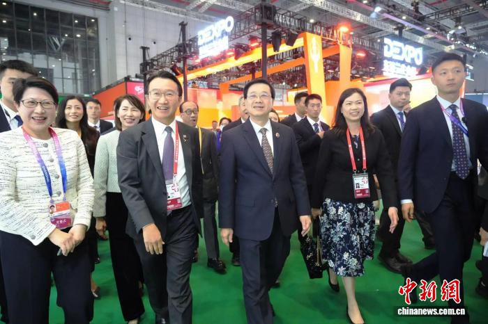 中新社上海11月5日电 (记者 李佳佳)第八届中国国际进口博览会5日在国家会展中心(上海)开幕,香港特别行政区行政长官李家超率领特区政府代表团出席进博会,并到香港展馆参观。作为历届进博会的重要参与者,今年香港企